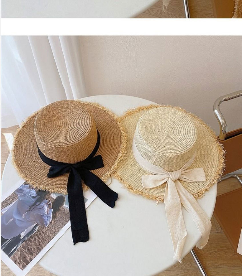 Bow Straw Hat Flat Straw Hat Braided Large Brim For Women Summer Vacation Beach Sunshade Hat